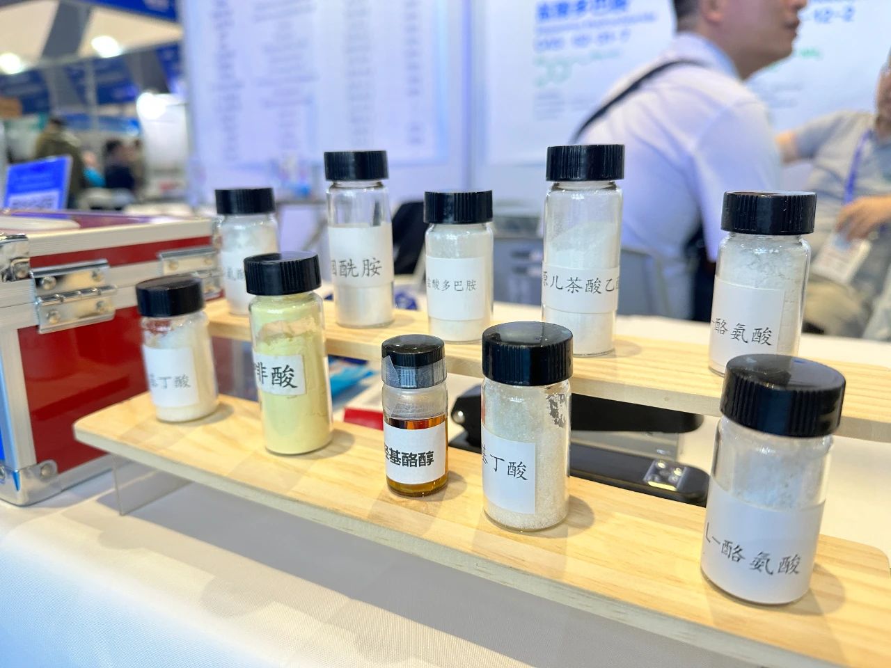 展会上,唯铂莱携带各式样品,使参展的朋友可以更直观的触及产品,工作人员也为客户进行专业的讲解,其中,羟基酪醇、烟酰胺、原儿茶酸、γ-氨基丁酸等产品广受好评,欢迎新老朋友前来交流。