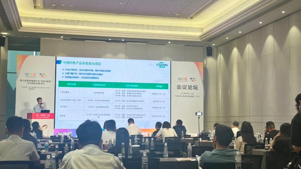 5月22日,位于分会场的“第三届营养健康行业“电商+制造”双向赋能发展论坛”现场,受浙江省健康产品化妆品行业协会邀请,唯铂莱高级产品经理归家宁以“数智制造”榄青素为启点,分享了题为《健康新活力 抗氧新动力———数智制造榄青素》的专题报告。