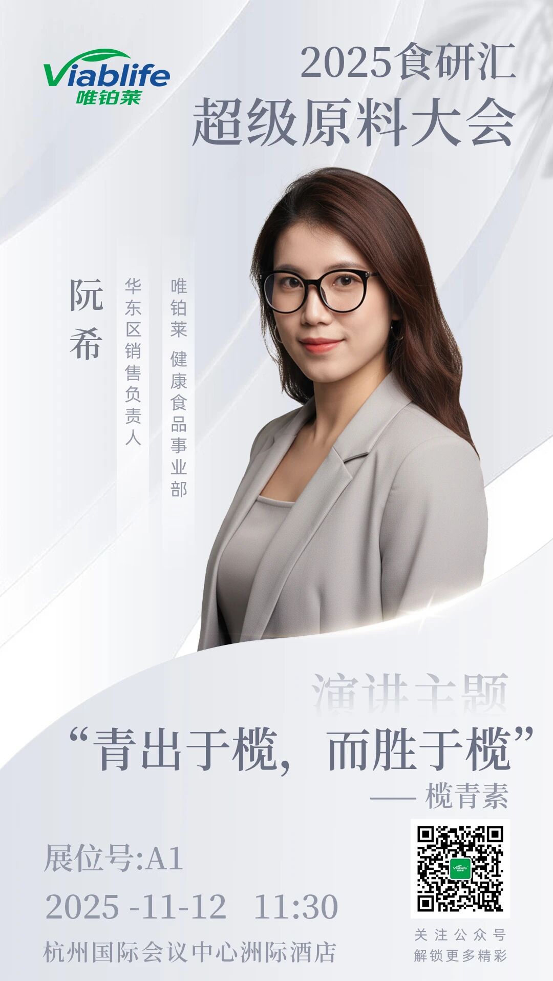 11月12日前“研”论坛,唯铂莱健康食品事业部华东区销售负责人阮希,将为您带来口服抗衰领域的新原料,“青出于榄而胜于榄”——榄青素主题演讲。从菌株筛选到发酵合成技术突破,从原料功效到现代消费需求分析,分享口服抗衰在外用护肤、运动营养等场景的潜力。与行业同仁共探口服抗衰新纪元。