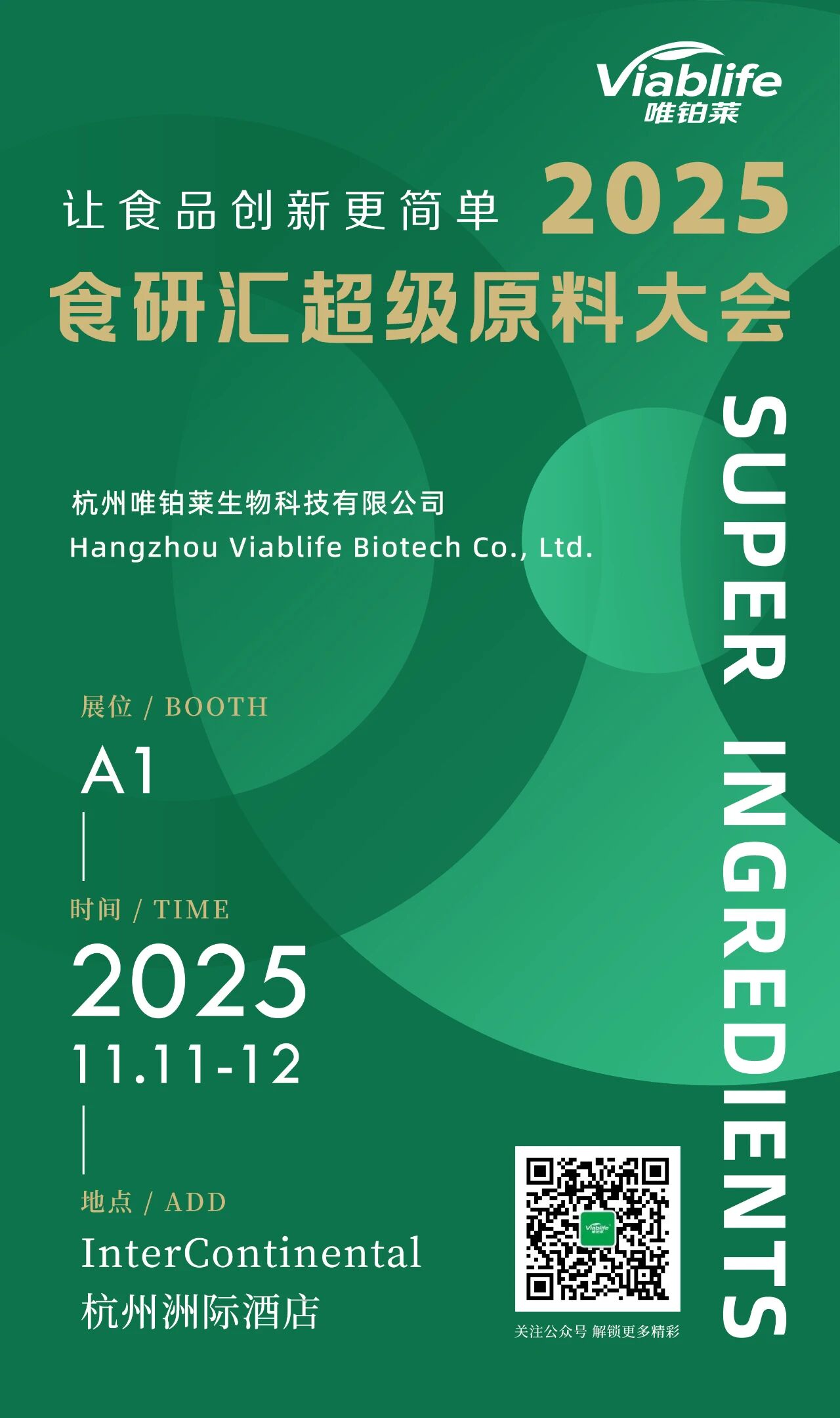 金秋十一月,相约西子湖畔。唯铂莱生物诚挚邀请您,于11月11日-12日莅临杭州「食研汇」展会。期待与您共话创新趋势,共绘食品产业的绿色未来。