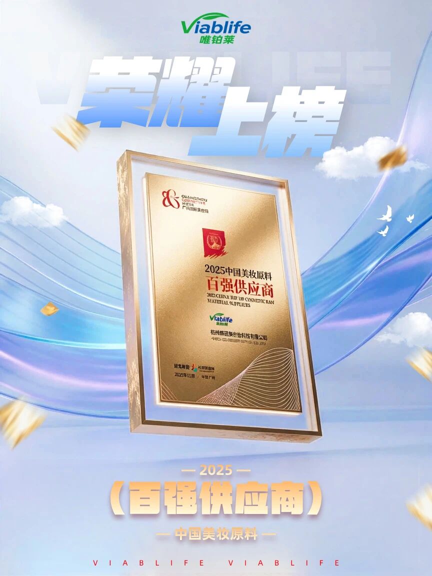 评选覆盖全国化妆品原料研发、生产、供应等领域的杰出企业。唯铂莱凭借卓越综合实力脱颖而出,荣获2025中国美妆原料百强供应商称号!此次上榜,不仅是荣誉的再次加冕,更是对其整体实力的全面检阅与深度展现。未来,唯铂莱将持续推动研发技术突破,立足全球化竞争与“双循环”发展新格局,助力“中国成分”闪耀世界舞台!