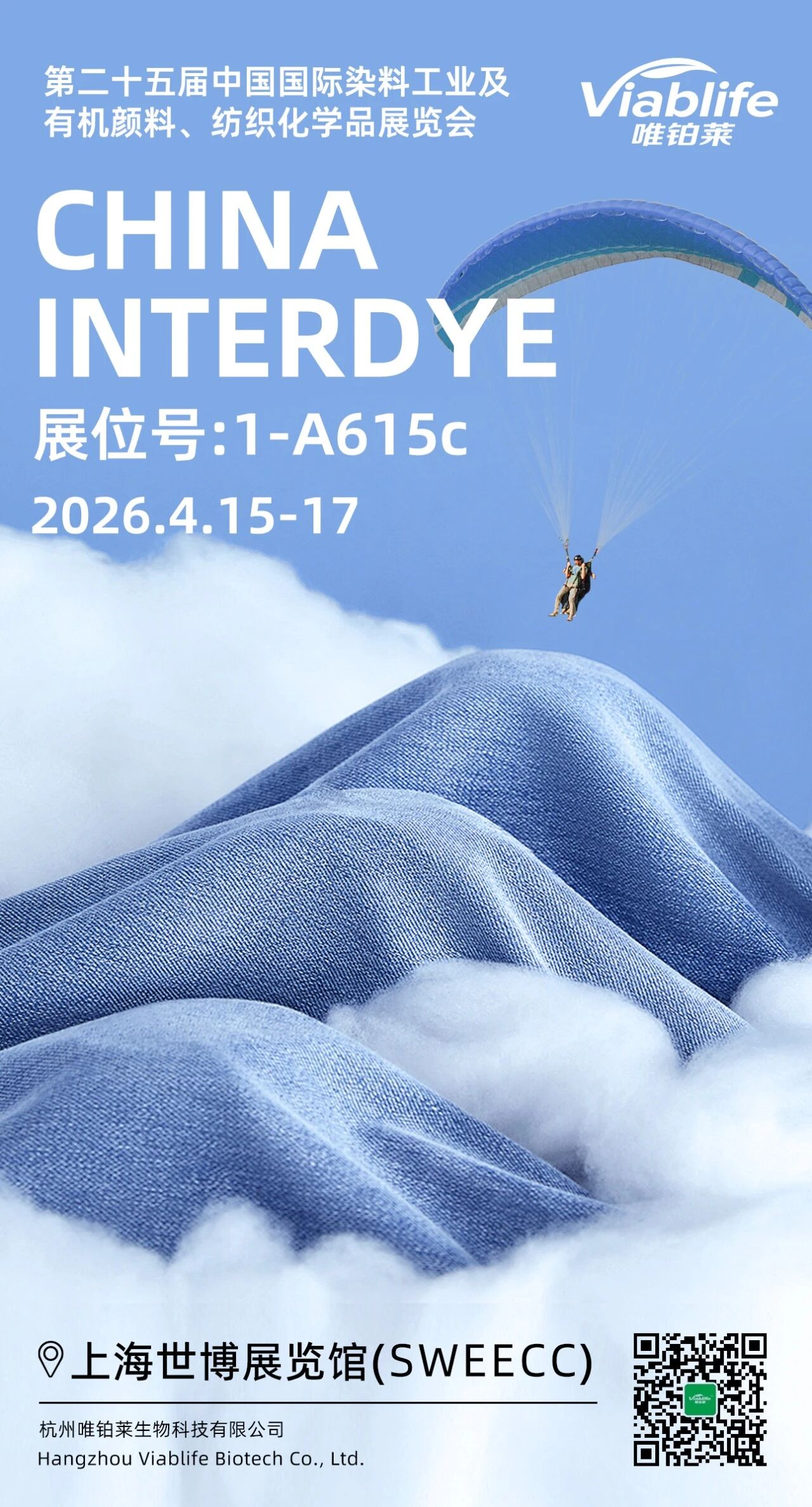 作为深耕合成生物科技、引领天然色素革新的国家高新技术企业,唯铂莱(Viablife)已整装待发,将携核心明星产品——生物发酵天然蓝色素「谷蓝®(Indigoidine®)」重磅亮相,诚邀海内外纺织、印染、化工行业新老客户、合作伙伴及各界同仁,莅临展位共探绿色染色新方案,洽谈合作,共话未莱!